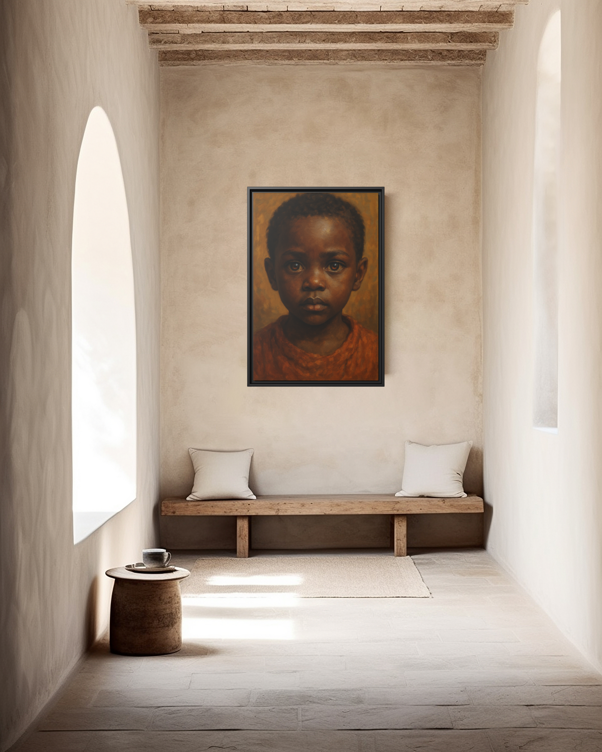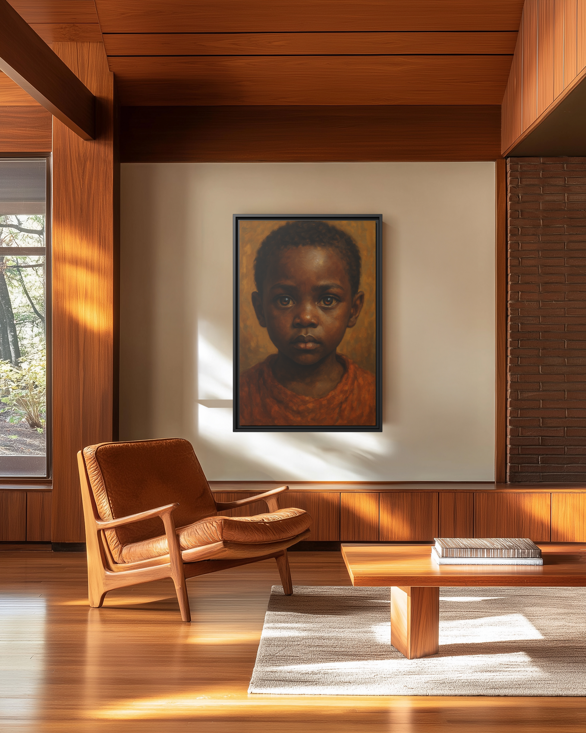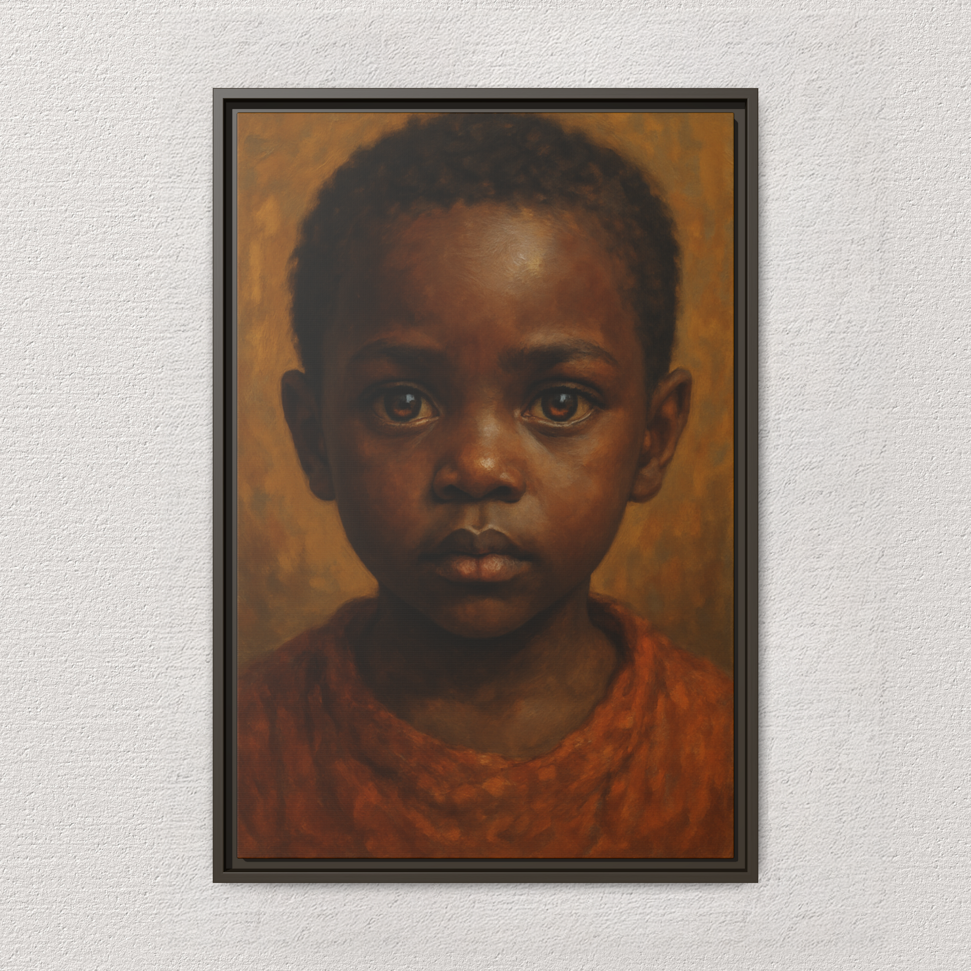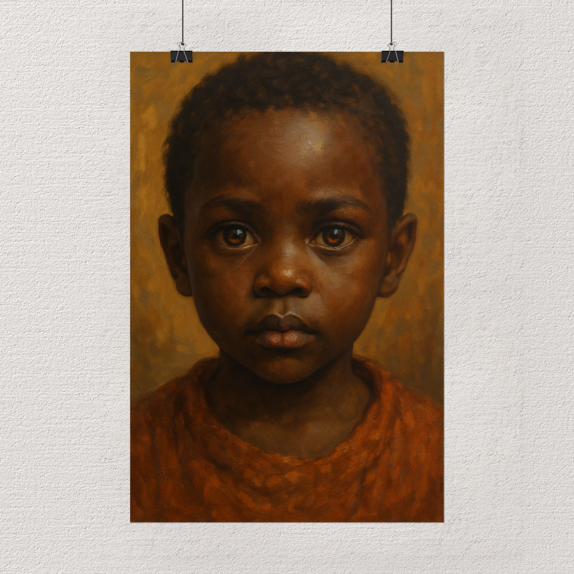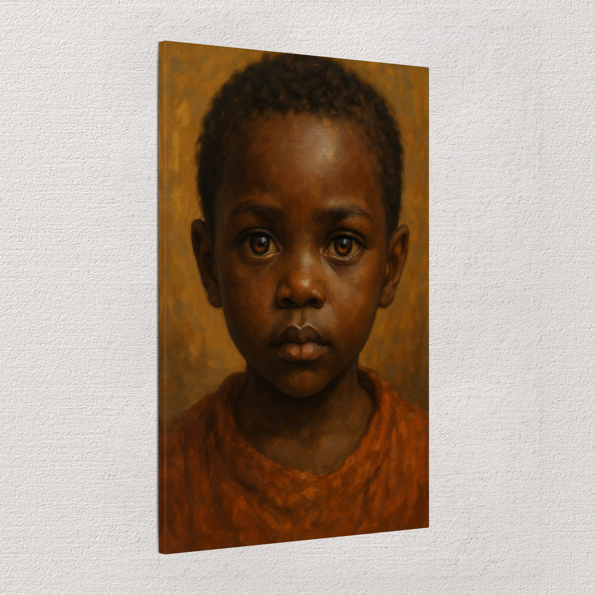 🎨 Unique Design: The future and the past meet in one gaze. This portrait captures the silent power and untapped wisdom held within a child’s eyes — a mirror of an entire continent’s hope and memory.