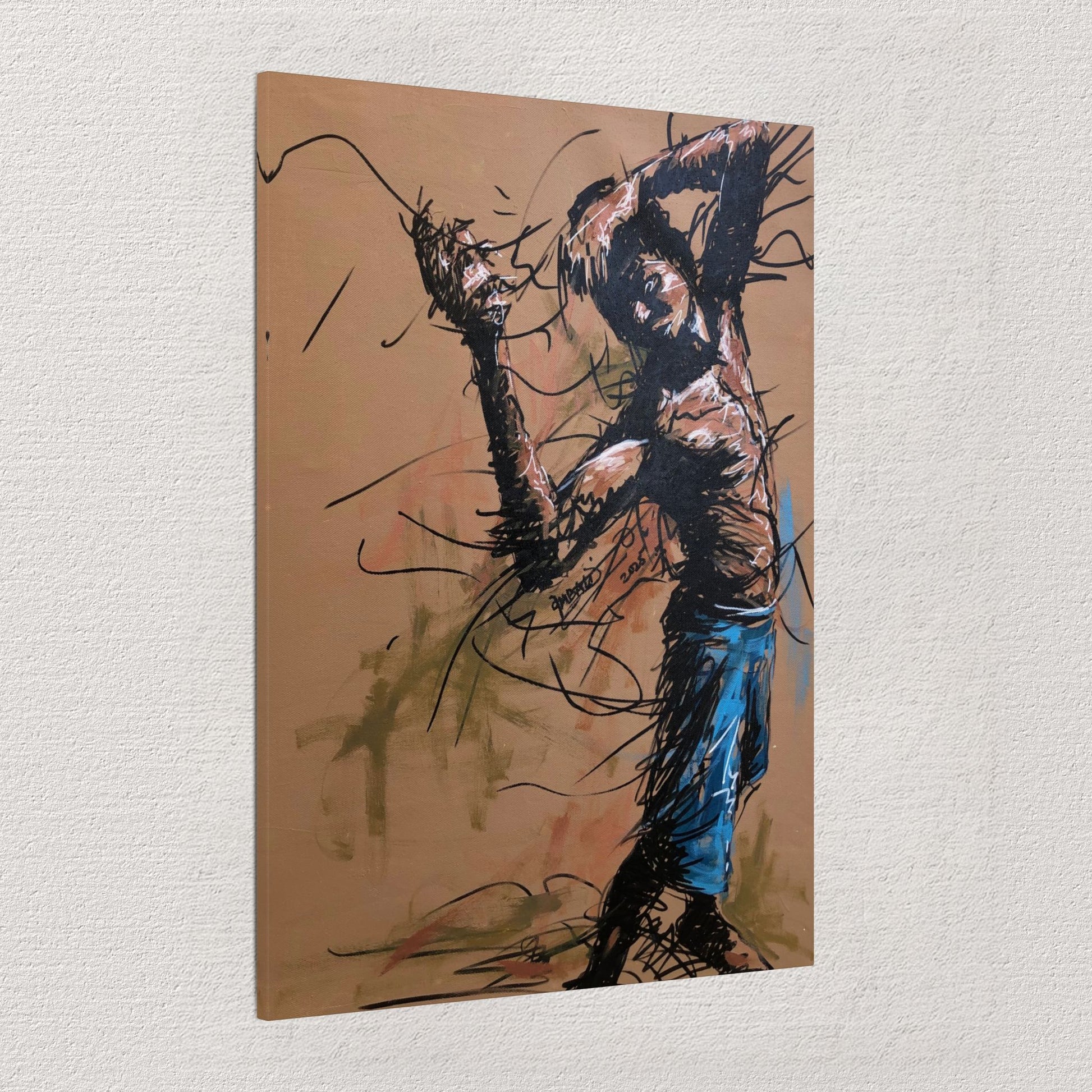 Omotayo Ambali is a visual artist based in Lagos, Nigeria. He is a graduate of Visual Arts from the University of Lagos and works in Acrylic, Oil, Pastel, Charcoal, Watercolour, Graphite, ink, and pen. His works often portray his love for humanity, as he loves to paint and draw human figures in their active or vulnerable moments.