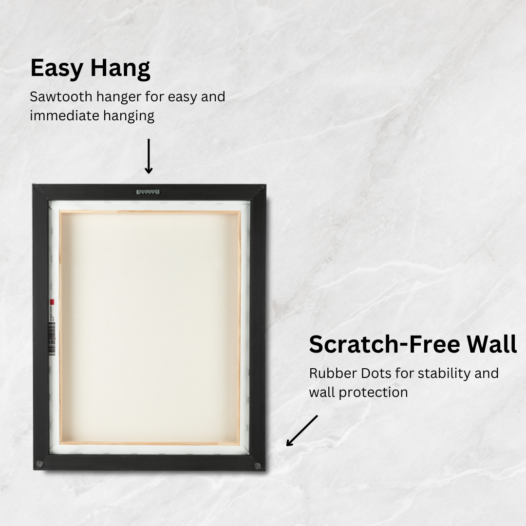 The integrated hanging system and soft rubber dots at the frame corners provide simple and secure installation, allowing immediate enjoyment of your artwork.