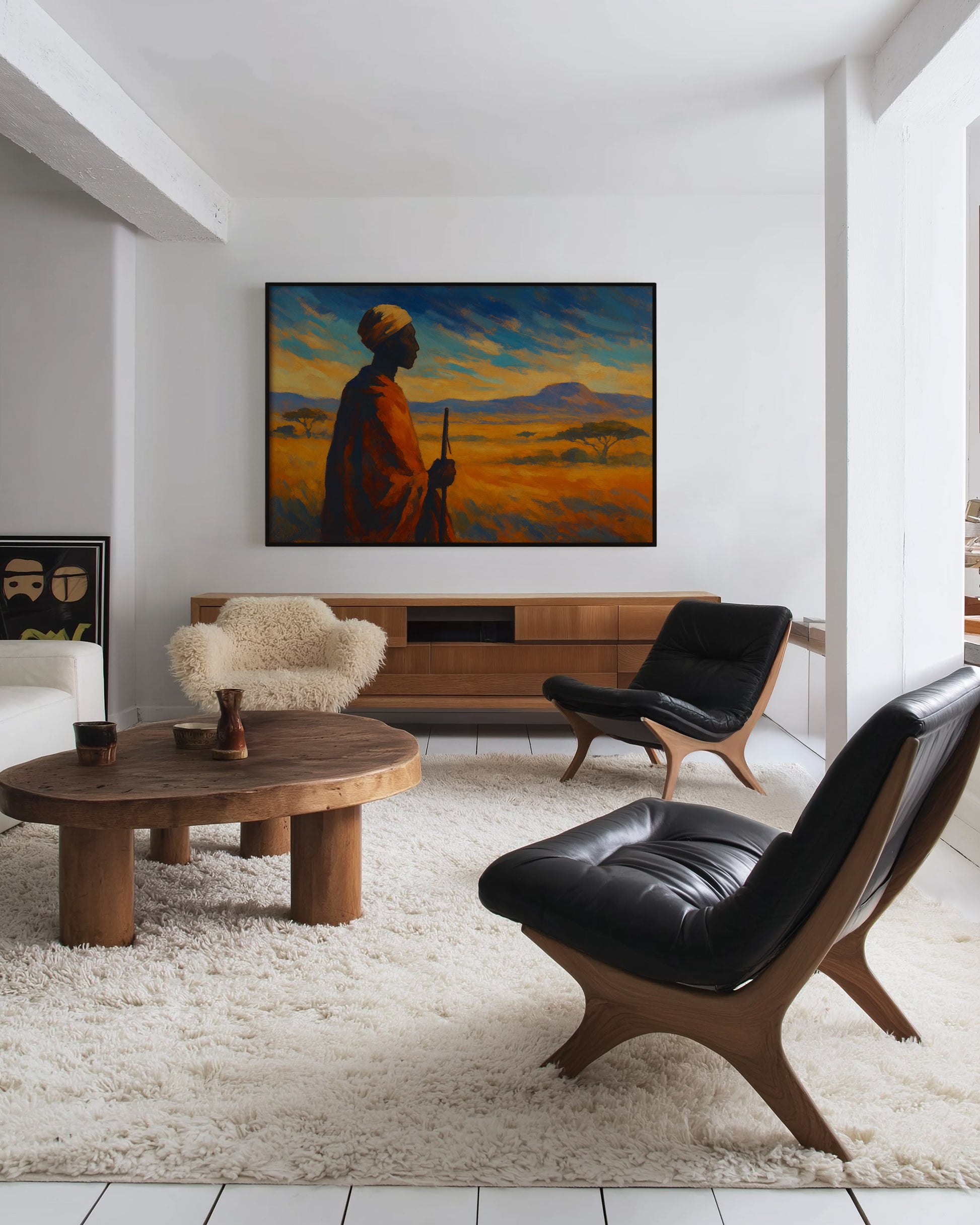 🎨 Unique Design: This piece evokes the profound connection between people and the vast African landscapes, symbolizing resilience, freedom, and a harmonious relationship with nature. It’s a visual journey across endless horizons and enduring strength.