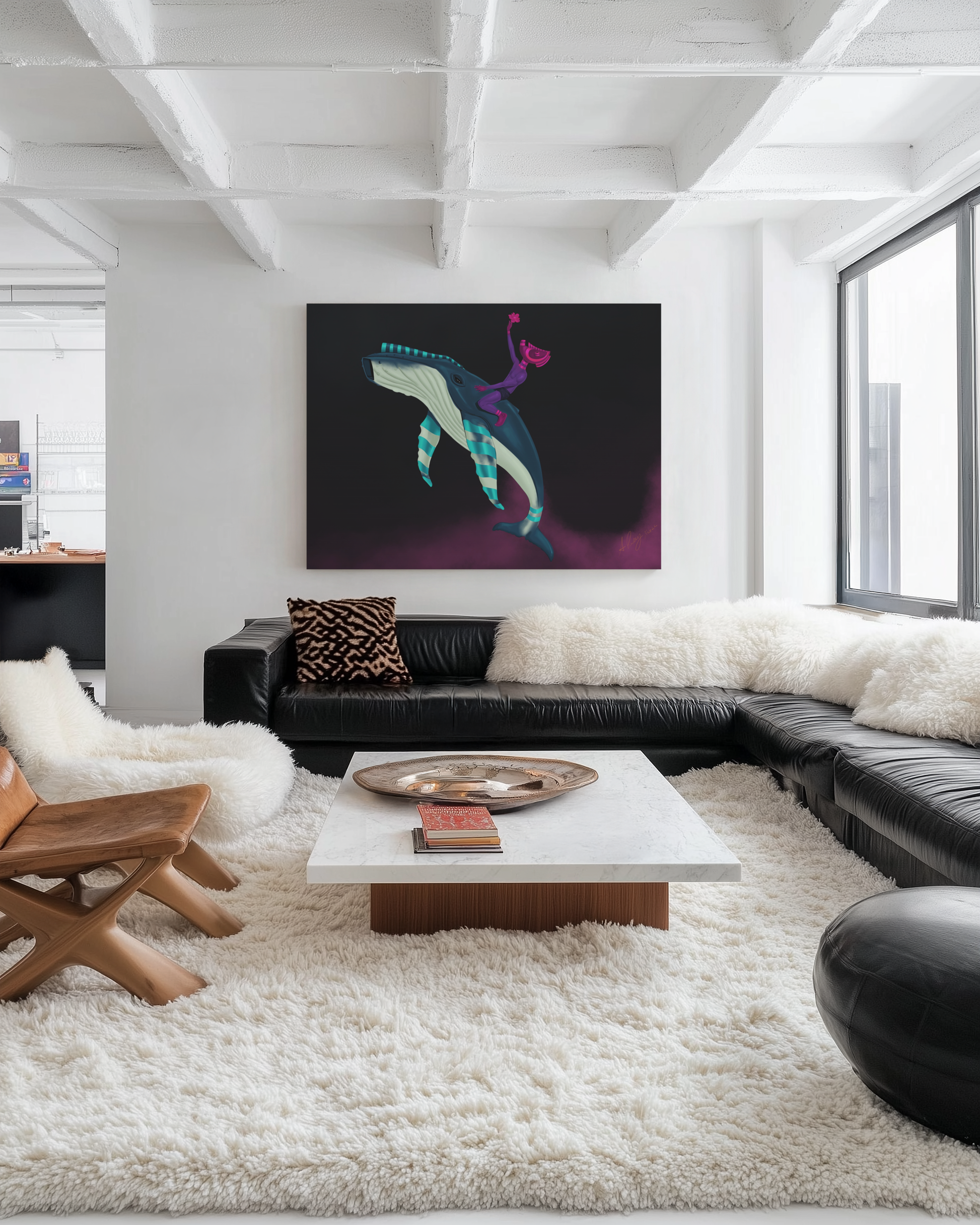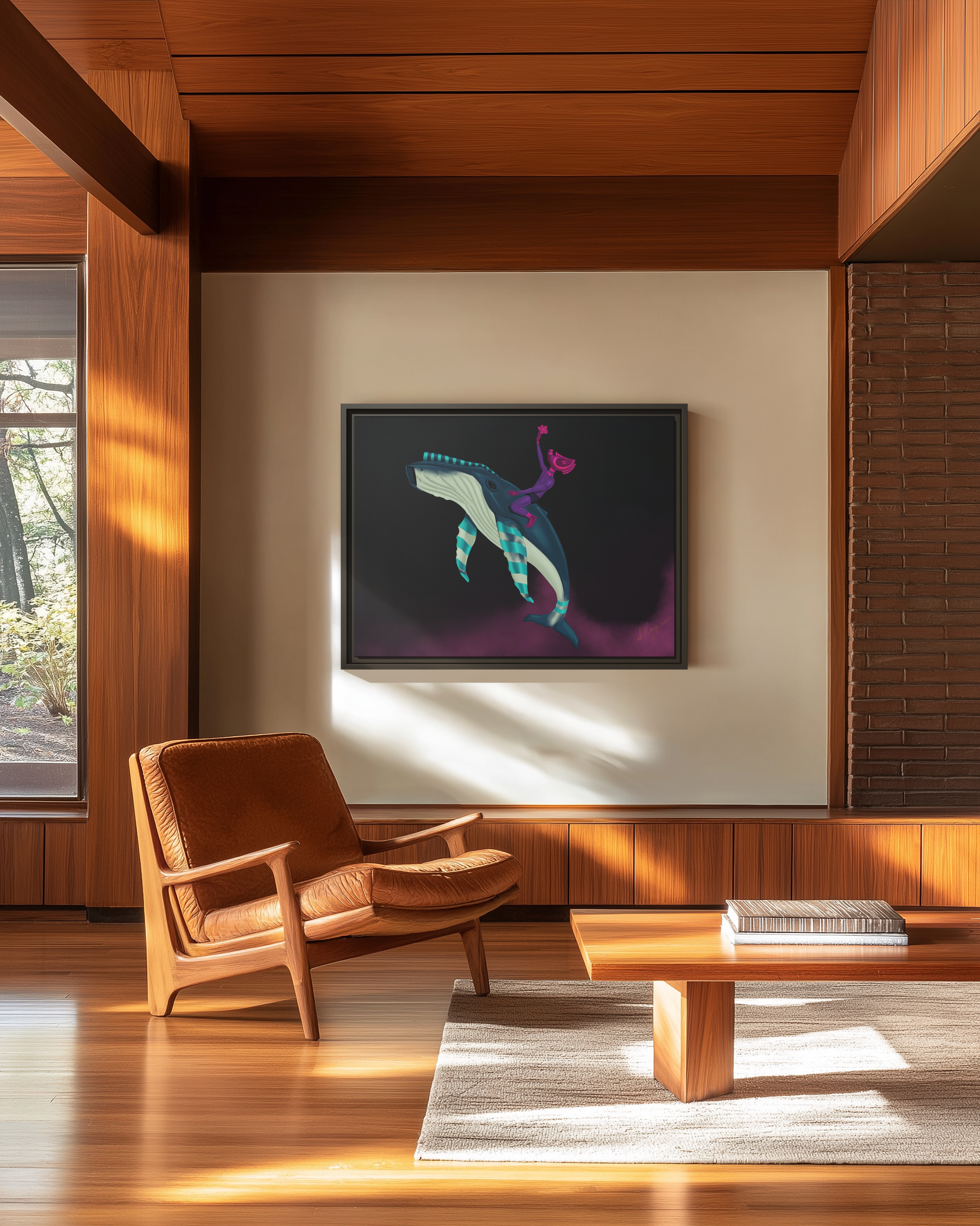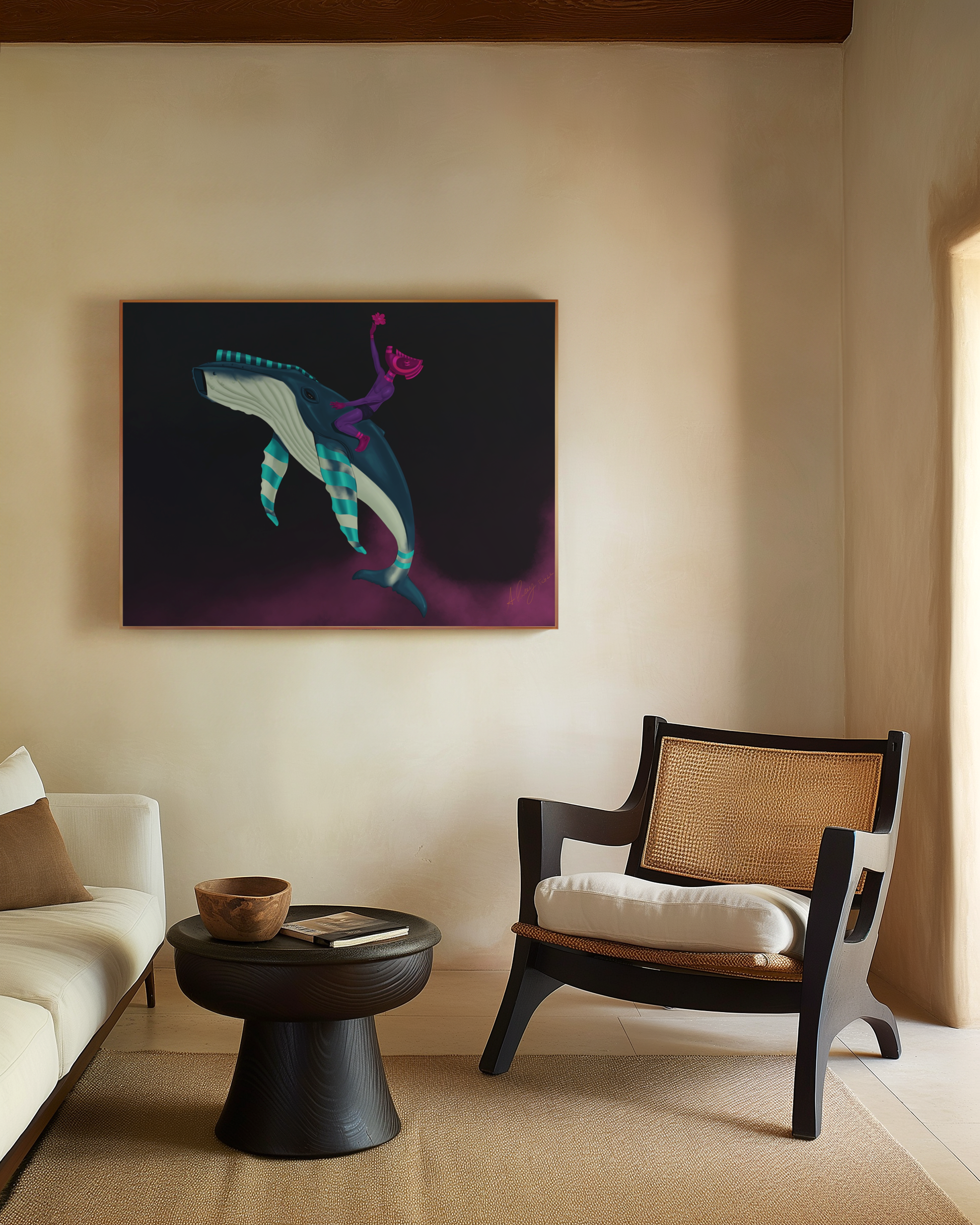 🎨 Unique Design: An ancestor riding a whale in the spirit world. The spirit world, a place that does not obey laws of physics in this world.