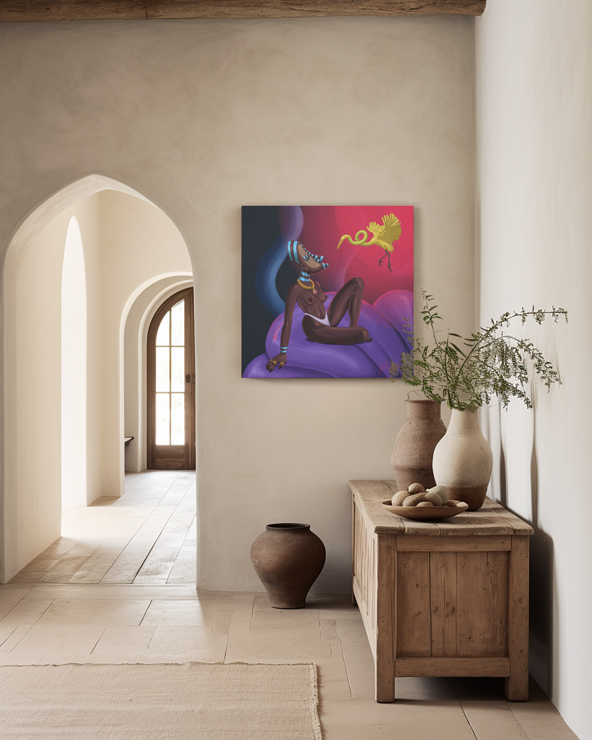 Mama Lisa is a unique artwork that embodies the beauty and majesty of royalty in the African culture, adding a special touch to your home and reminding you of the beauty royalty in you.
